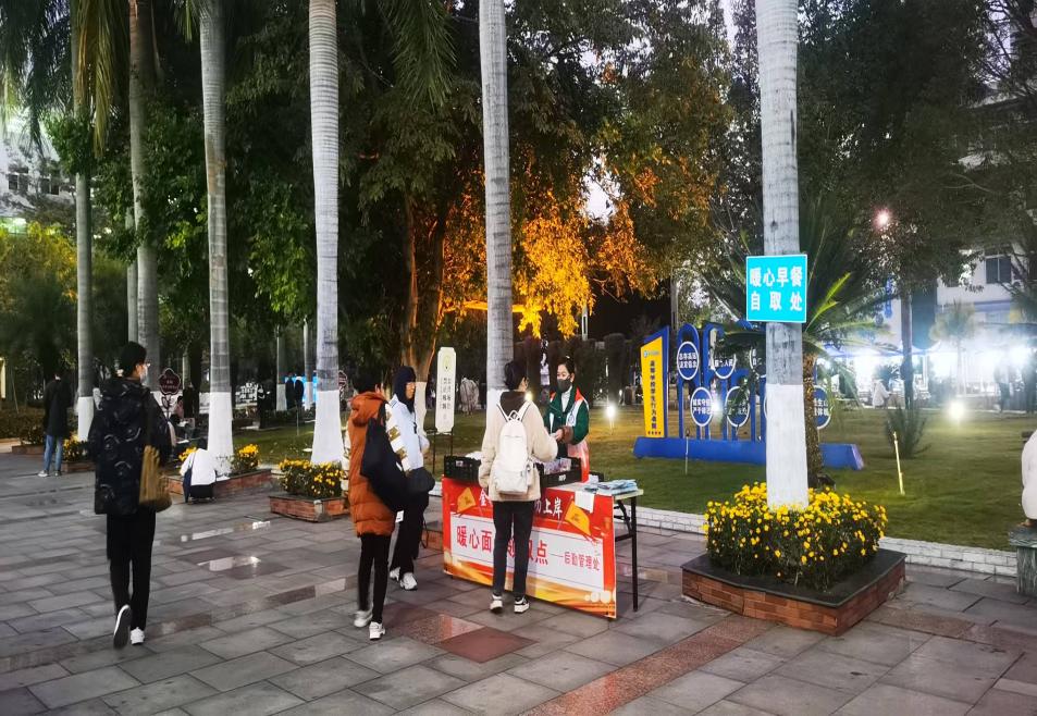 清晨7点不到,天色微亮,学校公园校区南门与尚学楼背后的两处“暖心能量补给点”已准备就绪。后勤工作人员冒着严寒,将一份份独立包装、新鲜出炉的面包递到步履匆匆的考生手中。据了解,该服务持续至早晨8点30分,两处点位累计为约600余名考生提供了免费早餐。不少考生接过面包,匆匆赶往考场的同时也不忘点赞。这份及关怀有效缓解了考生早晨赴考的就餐压力,也传递了学校的关怀与支持。